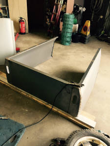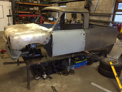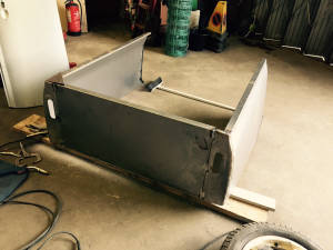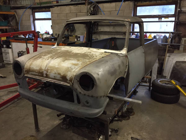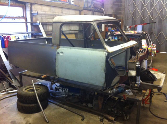 17/01/15 Flat pack Pickup rear end constructed, roof and wings gone for blasting. Oh yeah and pancakes for lunch...